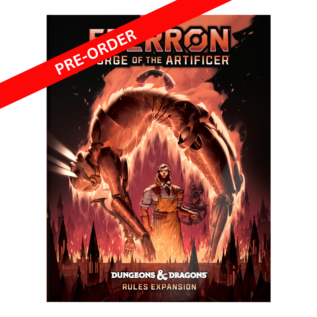 As a thank-you for your customers’ patience, purchases through participating WPN member stores will include a bonus printed Eberron mini-adventure, available at in-store pickup with the corrected product (while supplies last). This adventure expands the world of Eberron: Forge of the Artificer and supports continued play in the setting.