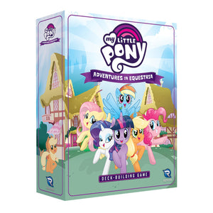 Canter into the My Little Pony -Adventures in Equestria, a cooperative Deck-Building Game, and take the role of a pony of Equestria! As Twilight Sparkle, Rainbow Dash, Fluttershy and more, you`ve been given a challenge to complete! You`ll need to travel amongst different locations throughout Ponyville, get new cards to improve your deck, complete tasks for resources, and overcome obstacles. Watch out -if you take too long, cloudswill build up over time and cause you to suffer setbacks in your quest. The ponies will have to work together using teamwork and friendship to win the game!